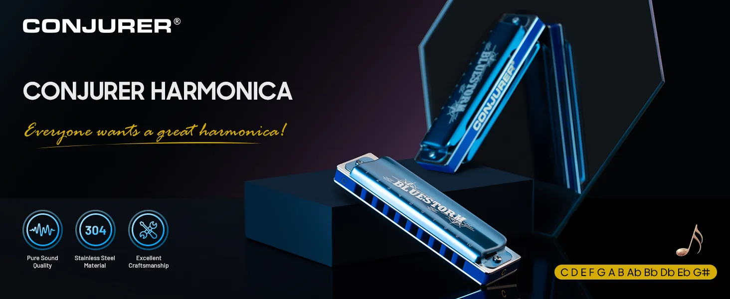 Whether you're a Blues fan, rock fanatic, or a loyal fan of country, folk, or jazz, the Blue Storm Blues harmonica has everything you need. It is resident in classic animation, film entertainment and pop music, bringing you endless inspiration and creative possibilities.